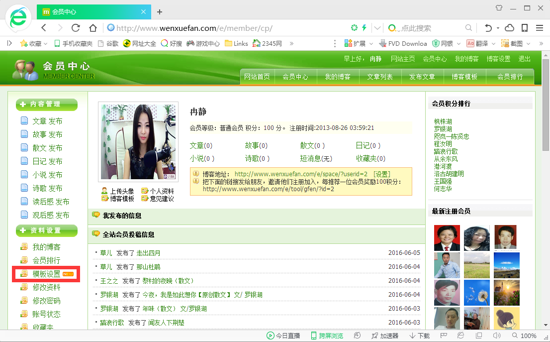 1.登录会员中心,如下图,点击左边的“模板设置”