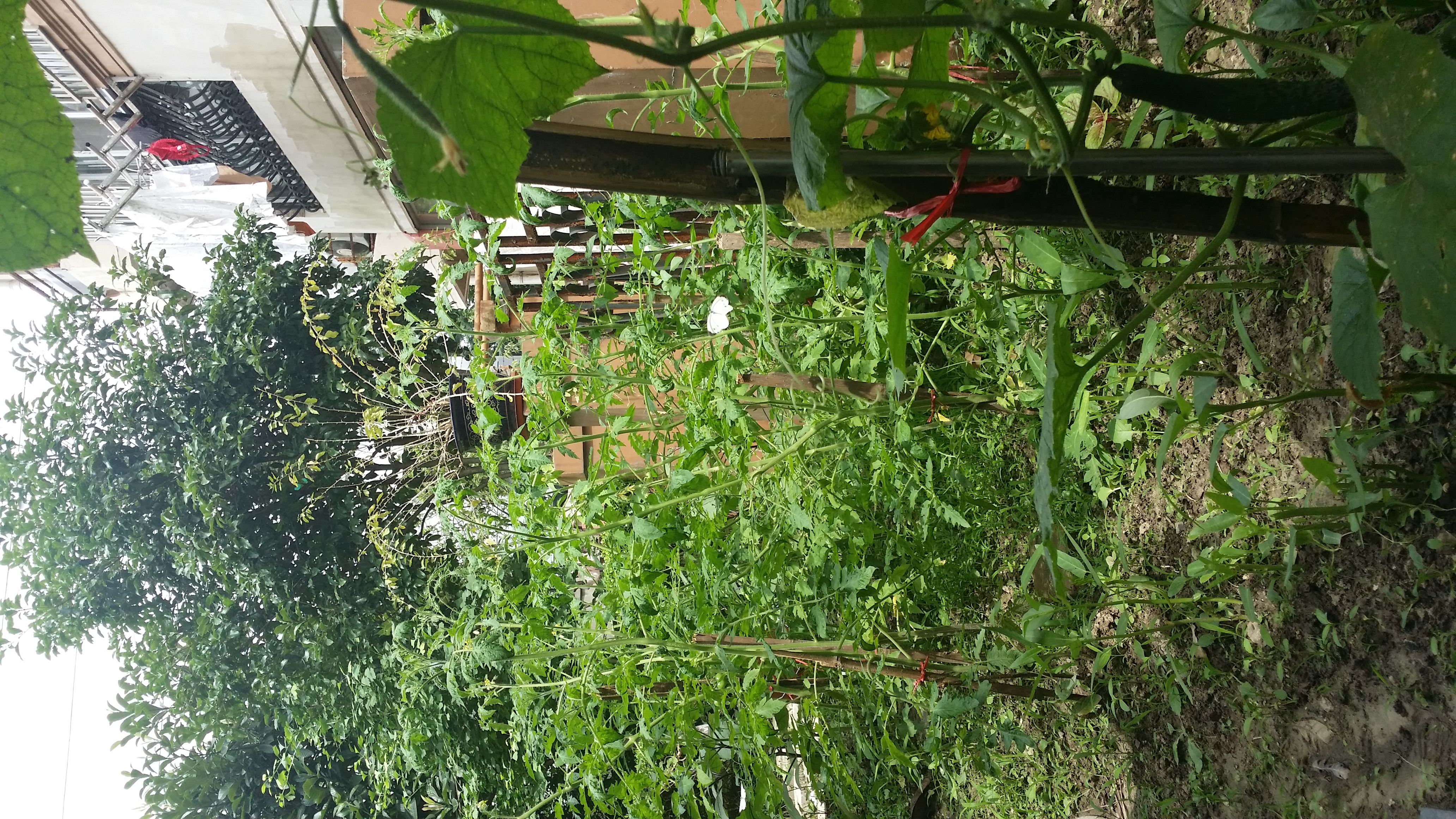 西红柿,一簇簇的淡黄色小花,毛茸茸的,她们要吸收日月精华好久才能结出青涩的果子。是不是我唠叨她长得太慢,不停的捣鼓声让她羞红了脸?哎,多好看,红晕挂在脸颊这才是美人面,我夸她了,她的脸更红了。