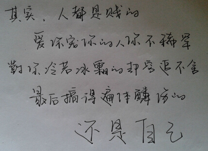2.其实,人都是贱的,爱你宠你的人你不稀罕,对你冷若冰霜的却穷追不舍,最后搞得遍体鳞伤的还是自己!